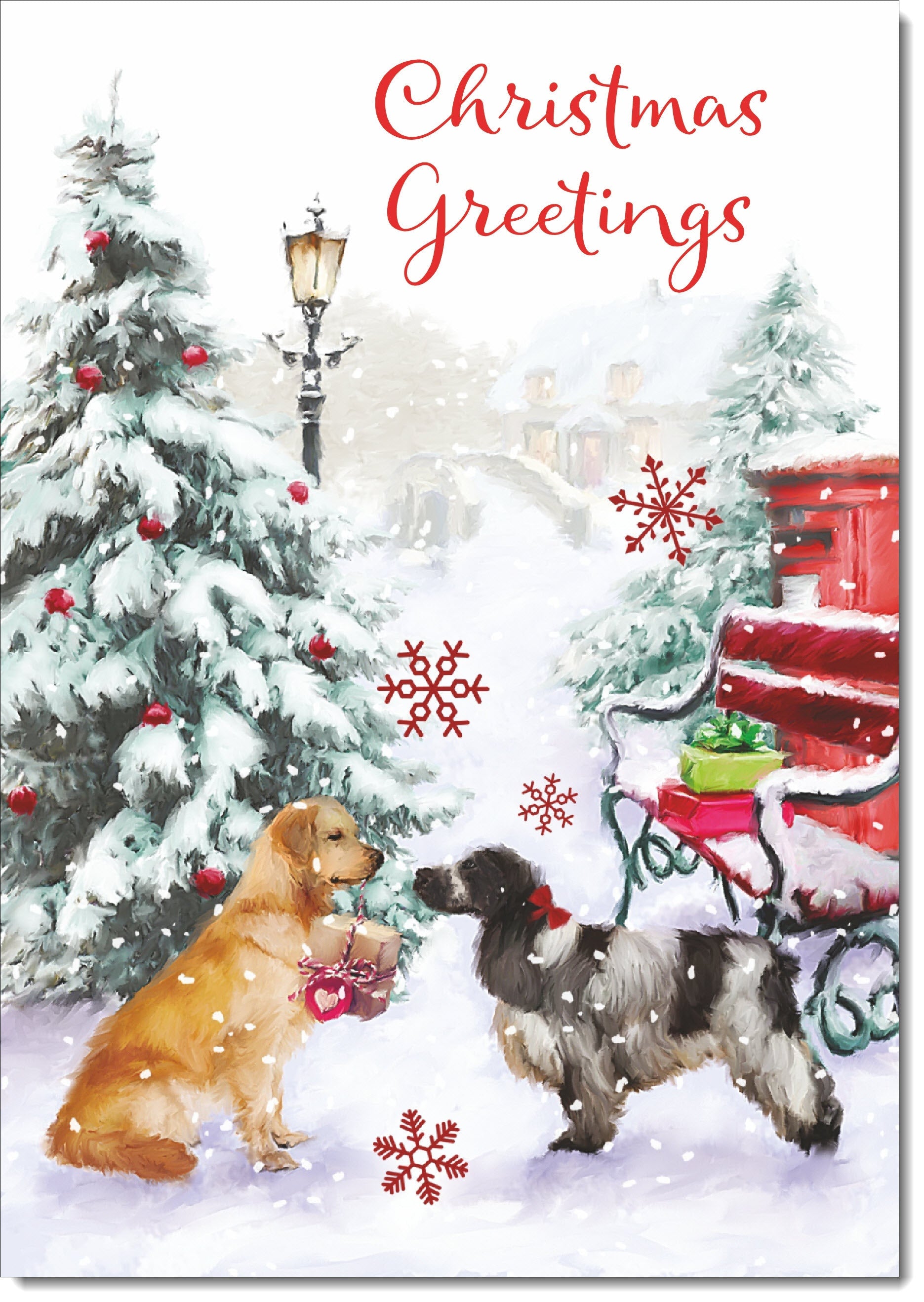 Christmas Greetings Christmas Card Two Dogs in Snow