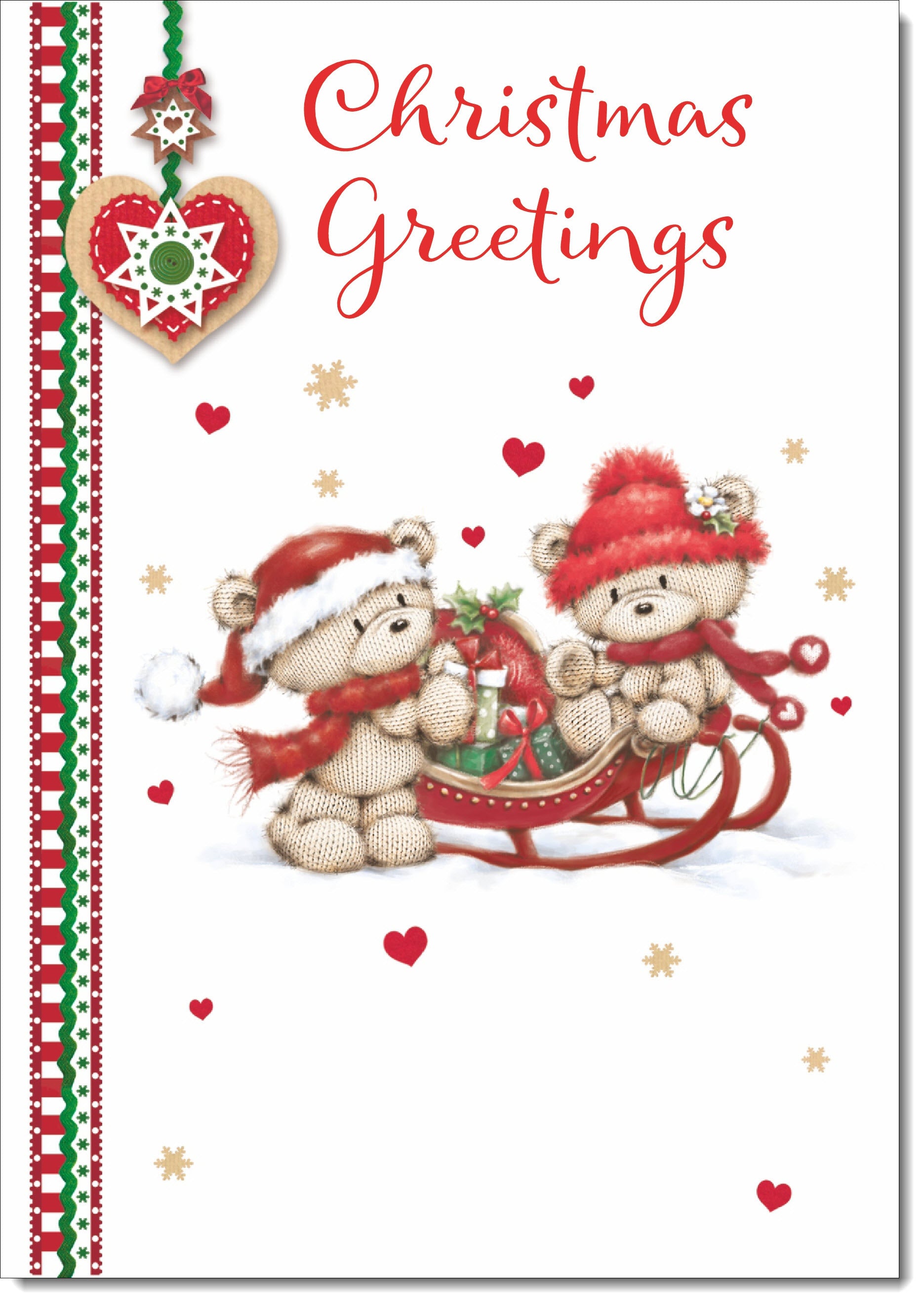 Christmas Greetings Christmas Card Two Cute Bears on Sled