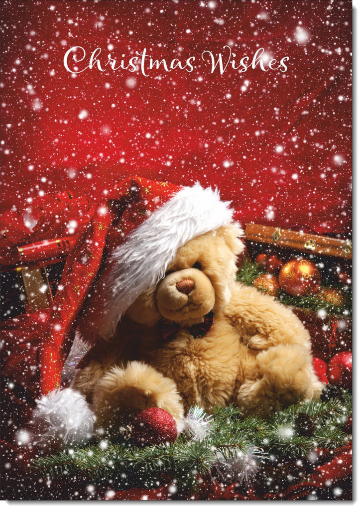 Christmas Wishes Christmas Card Teddy Bear in Santa Hat