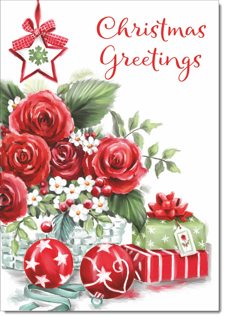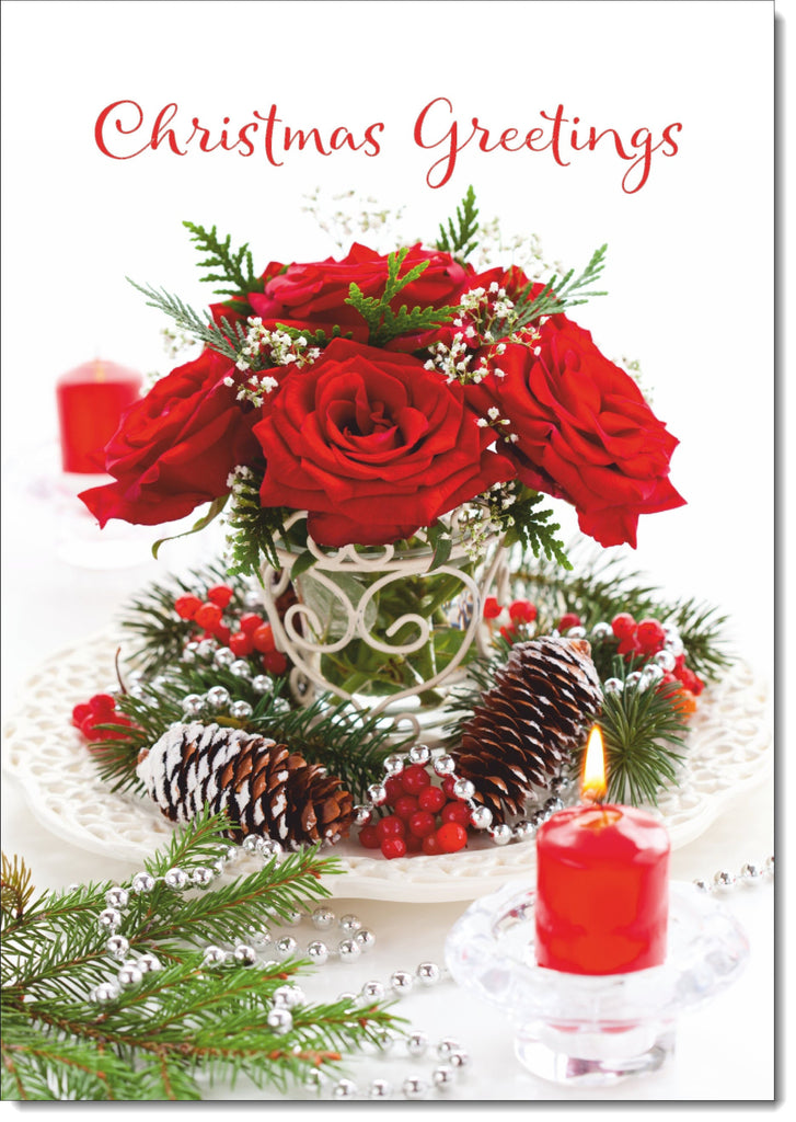 Christmas Greetings Christmas Card Red Roses Christmas Arrangement