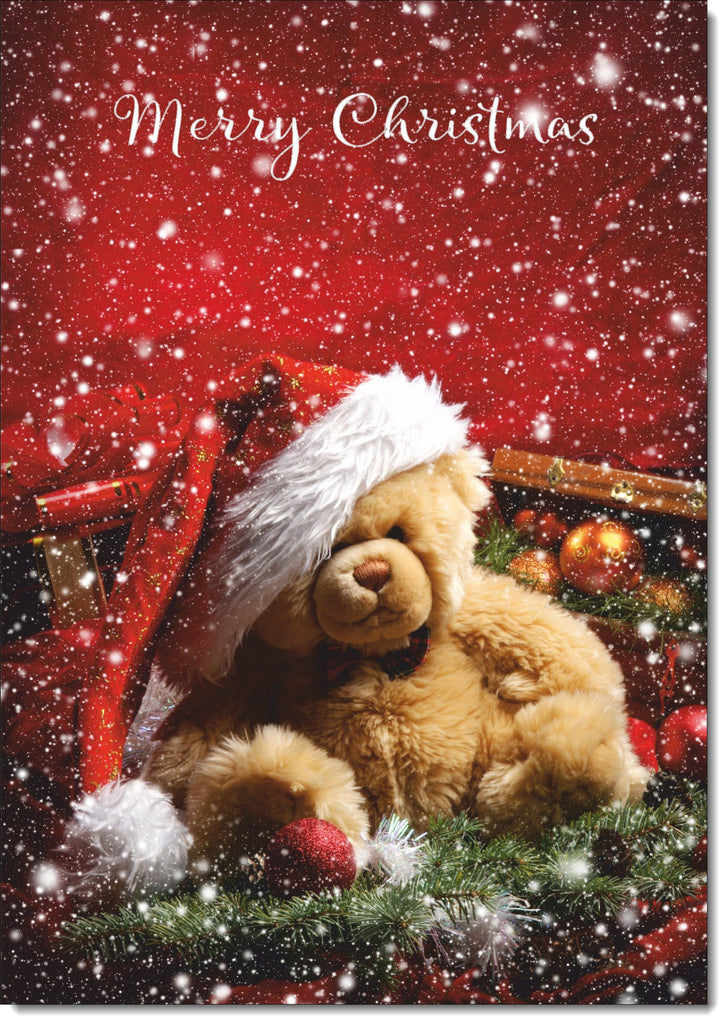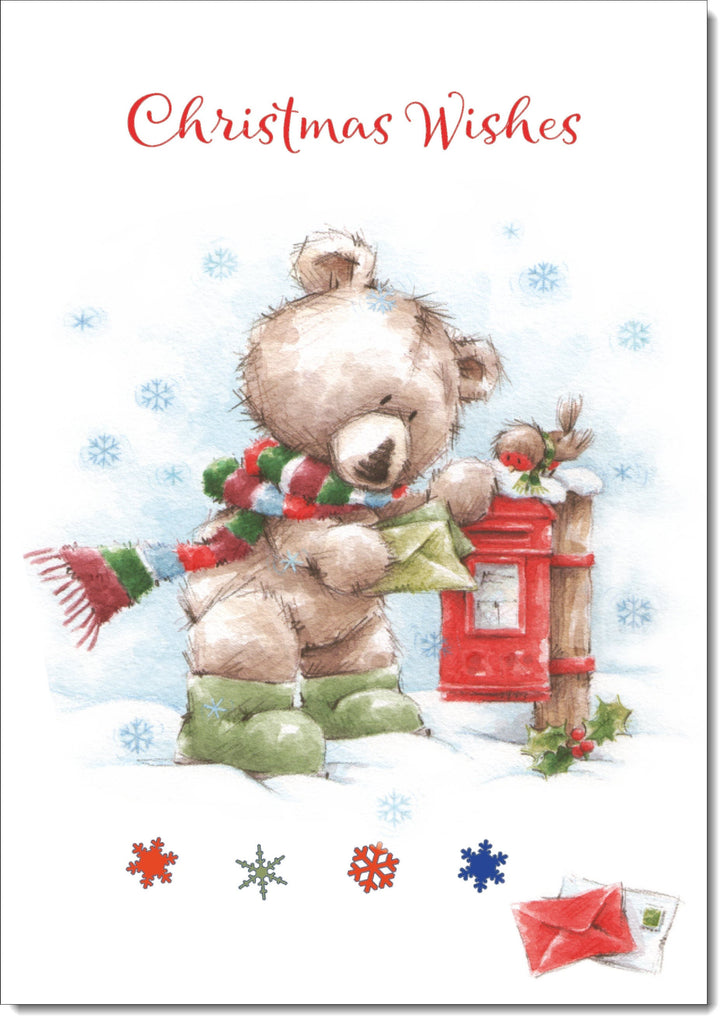Christmas Wishes Christmas Card Cute Bear at Post Box