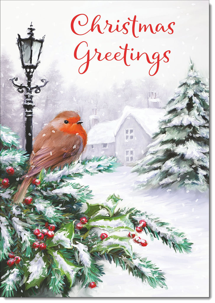 Christmas Greetings Christmas Card Robin in Winter Scene