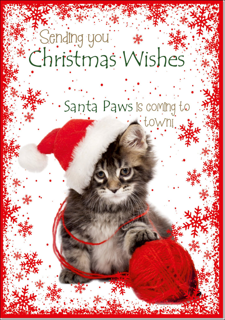 Christmas Wishes Christmas Card Cute Santa Paws Kitten Cat Pet