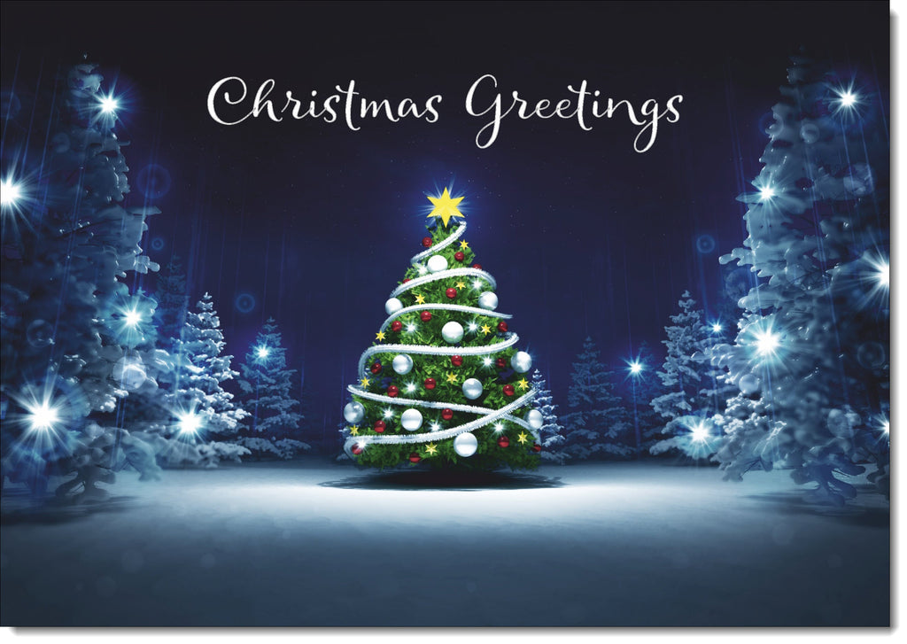 Christmas Greetings Christmas Card Christmas Tree Lights in Dark Sky