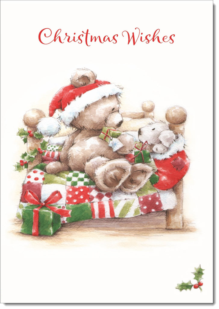 Christmas Wishes Christmas Card Cute Bear on Bed
