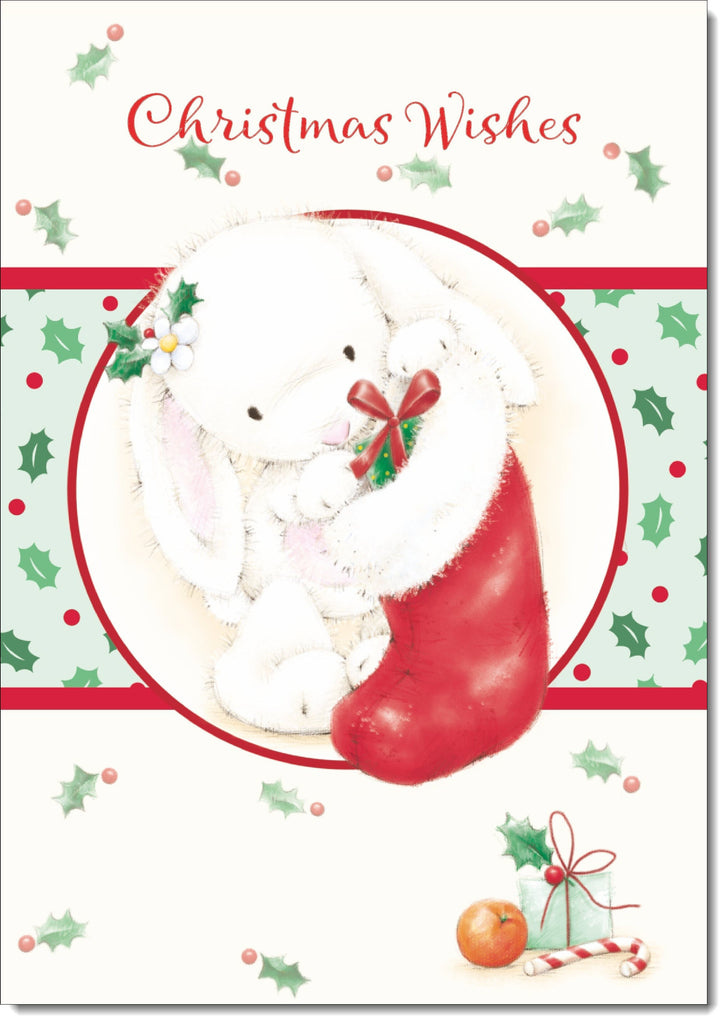 Christmas Wishes Christmas Card Cute Rabbit with Stocking