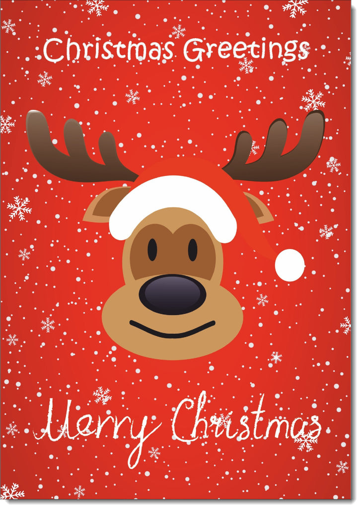 Christmas Greetings Christmas Card Rudolph on Red Background