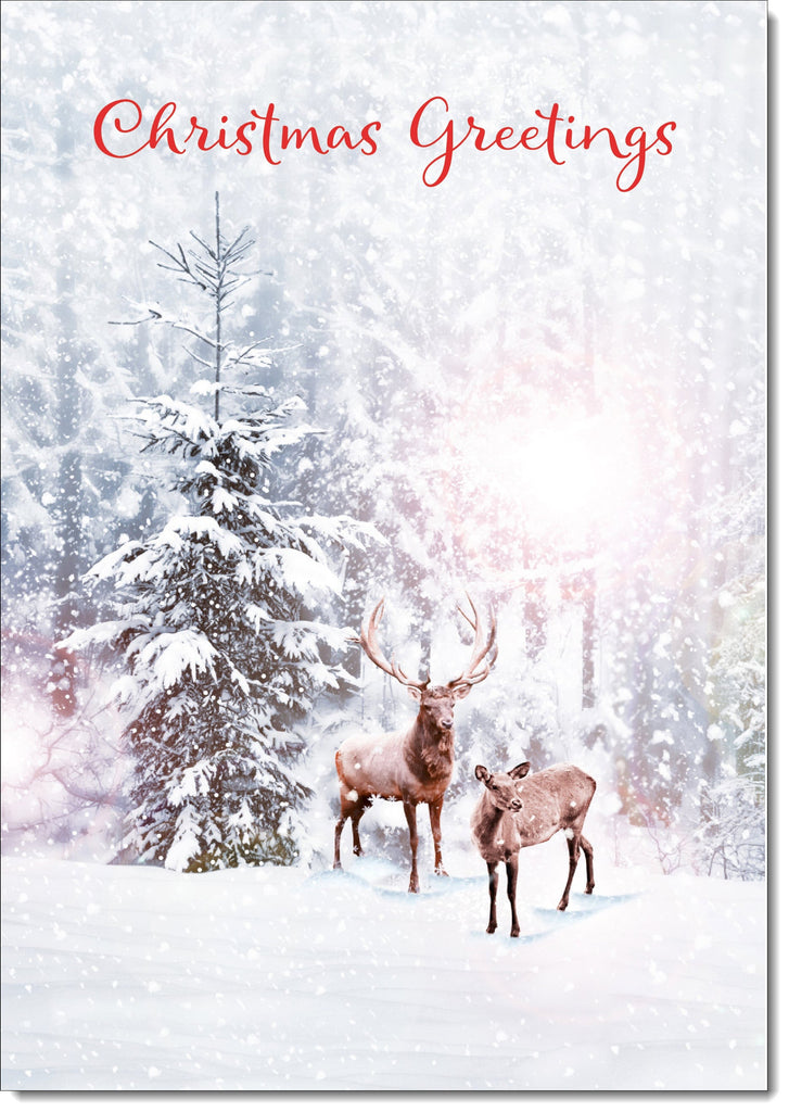 Christmas Greetings Christmas Card Stag and Doe in Snowy Forest