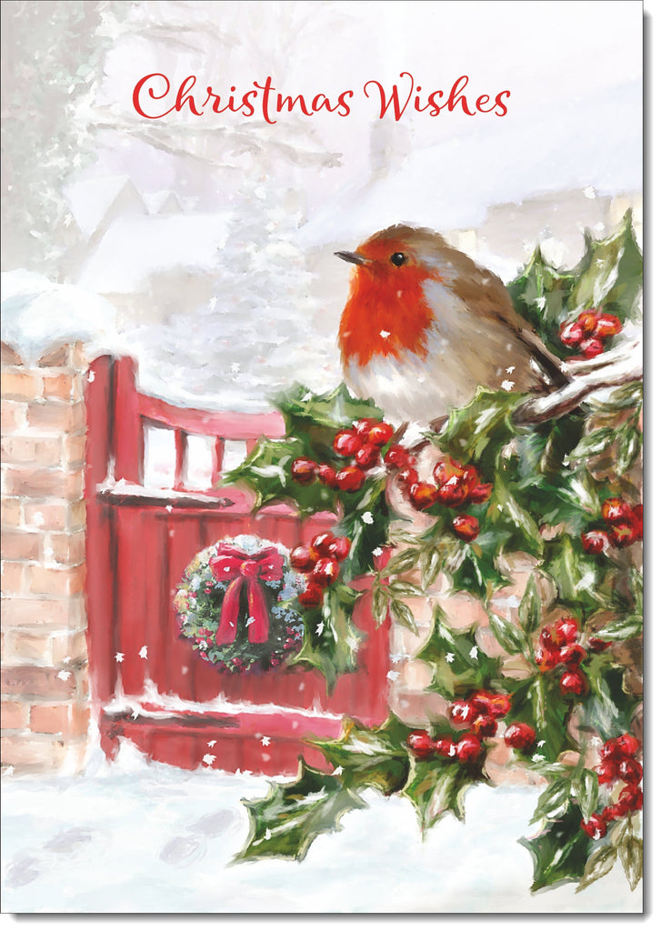 Christmas Wishes Christmas Card Robin on Holly Tree