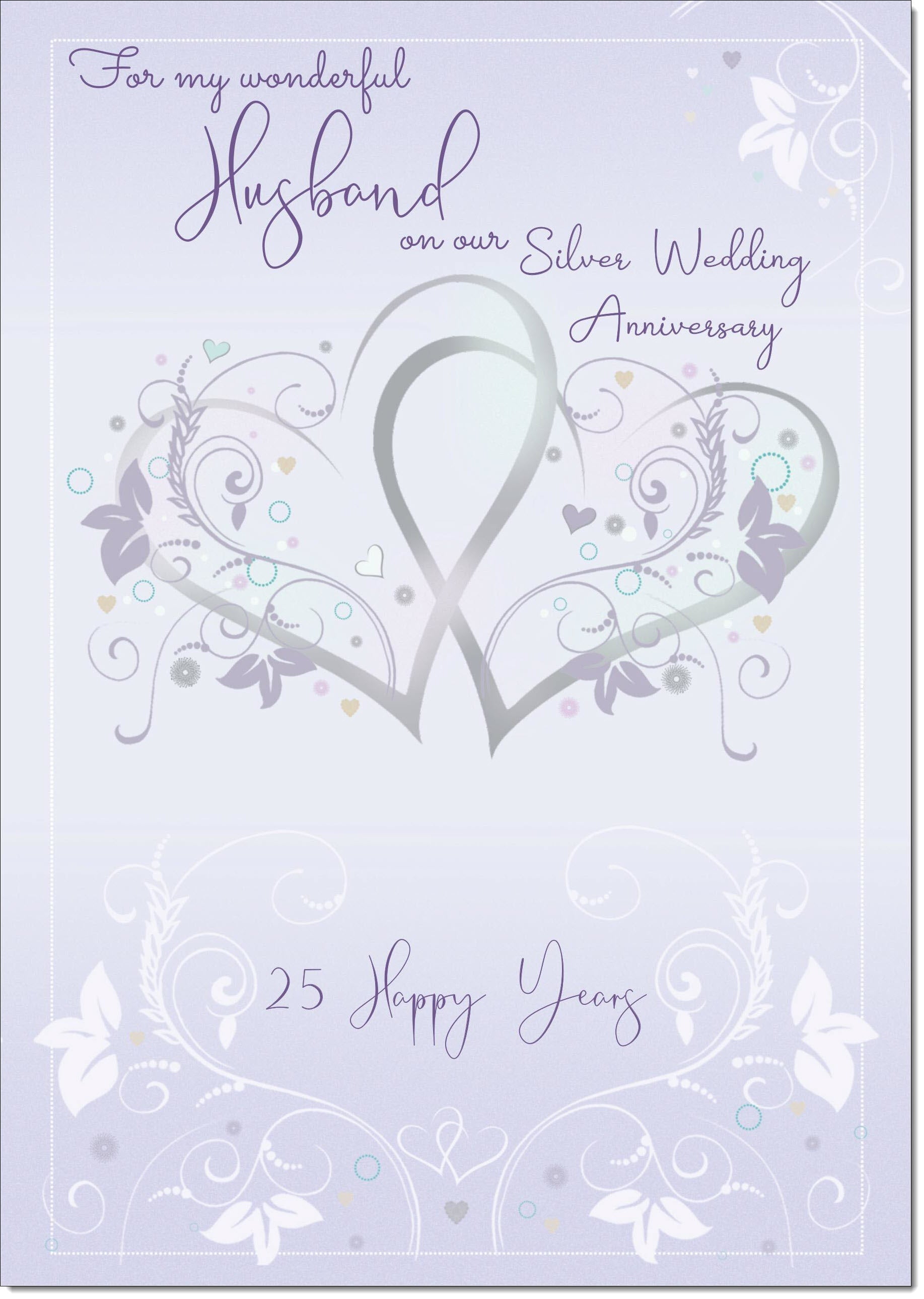 Husband Silver 25th Wedding Anniversary Card Love Hearts