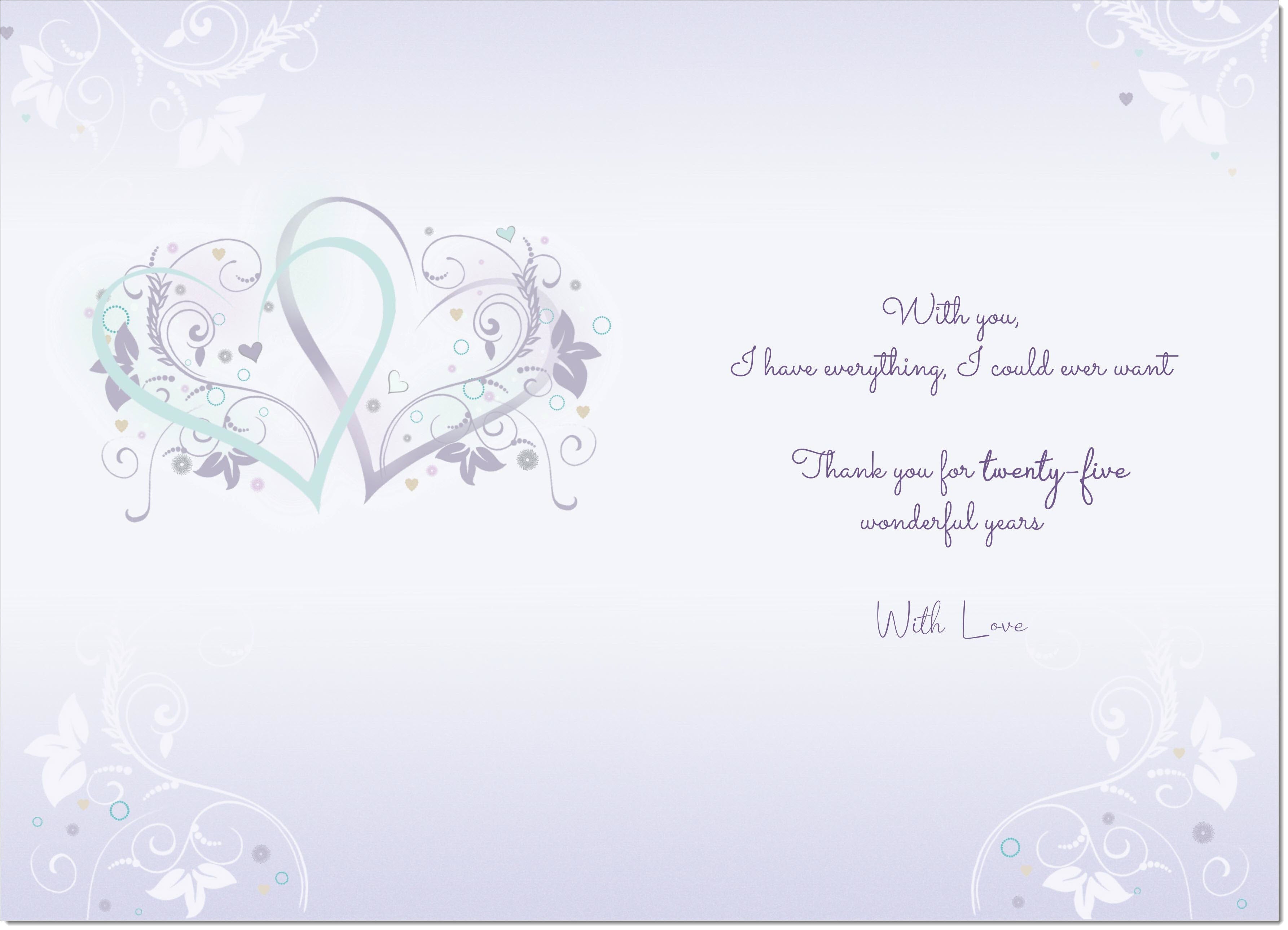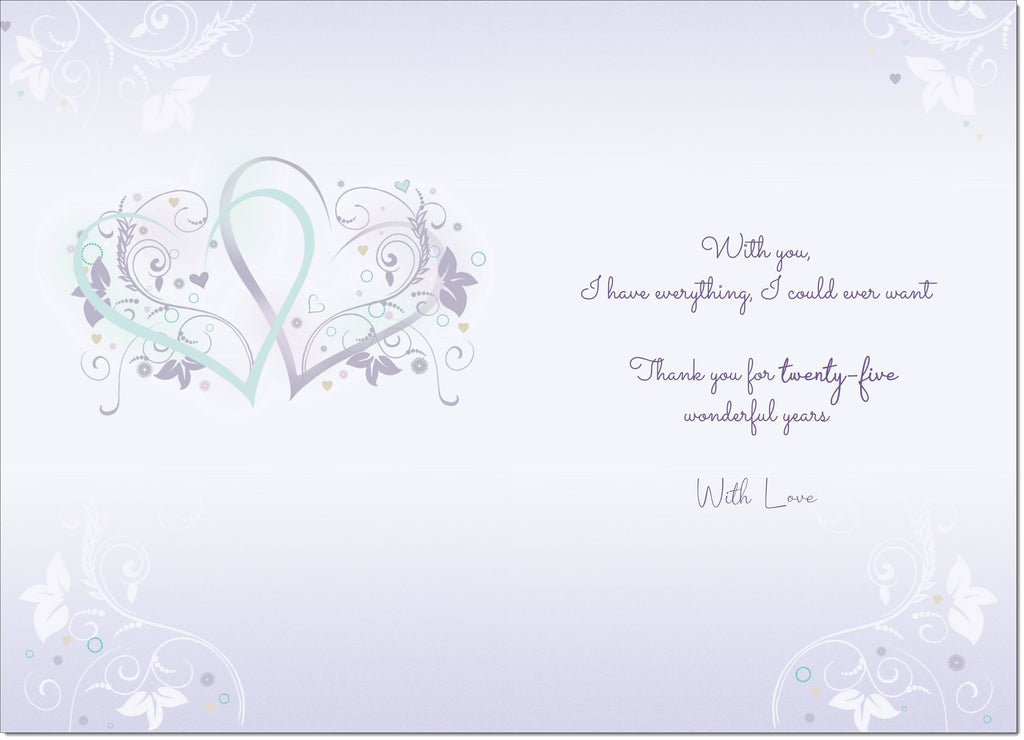 Wife Silver 25th Wedding Anniversary Card Love Hearts