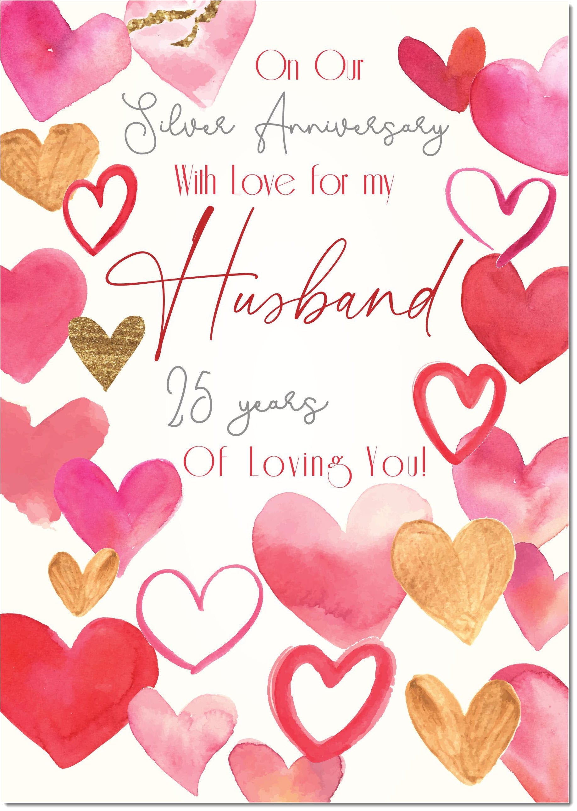 Husband Silver 25th Wedding Anniversary Card Love Hearts