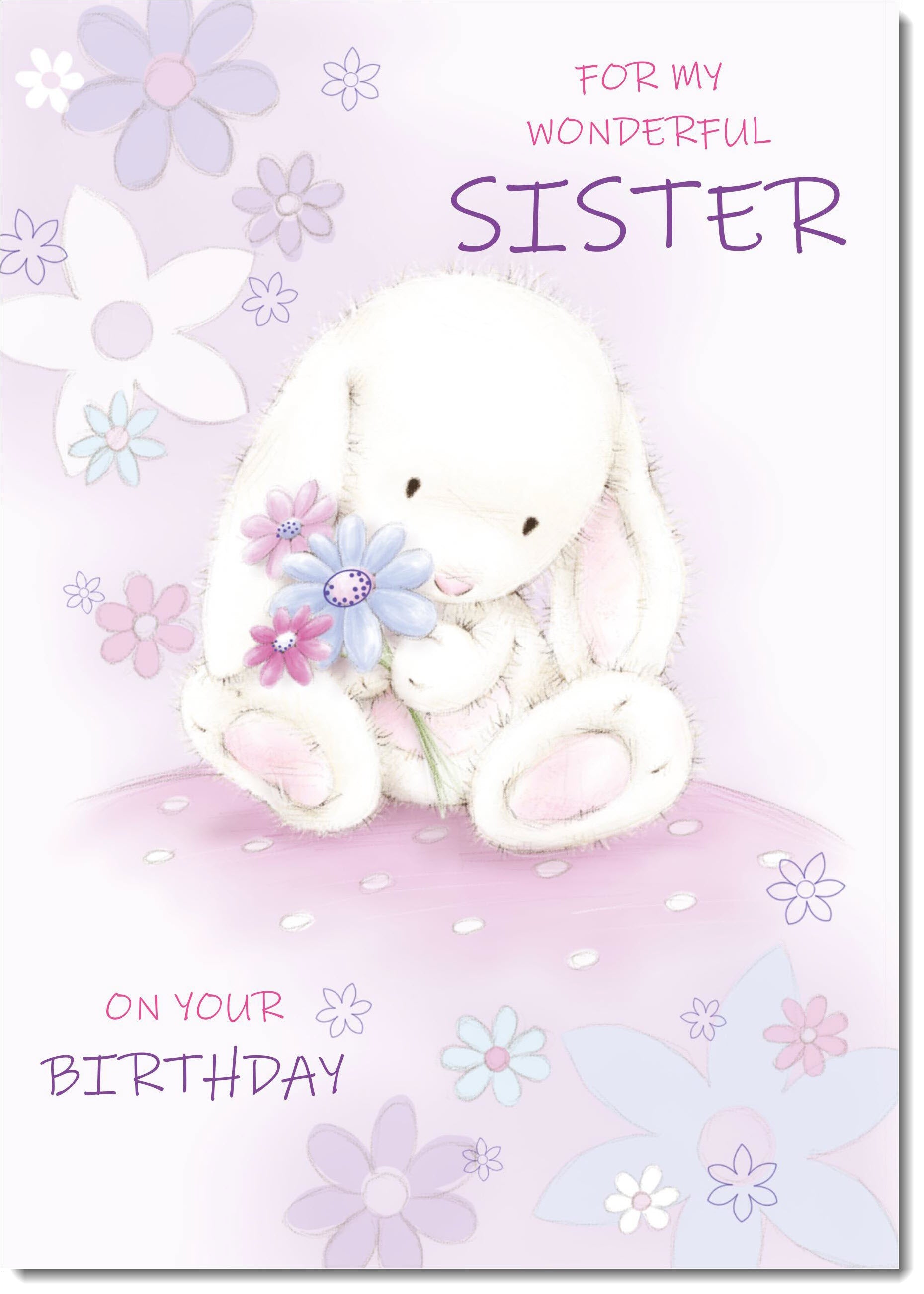 Sister Birthday Card Cute Rabbit with Flowers