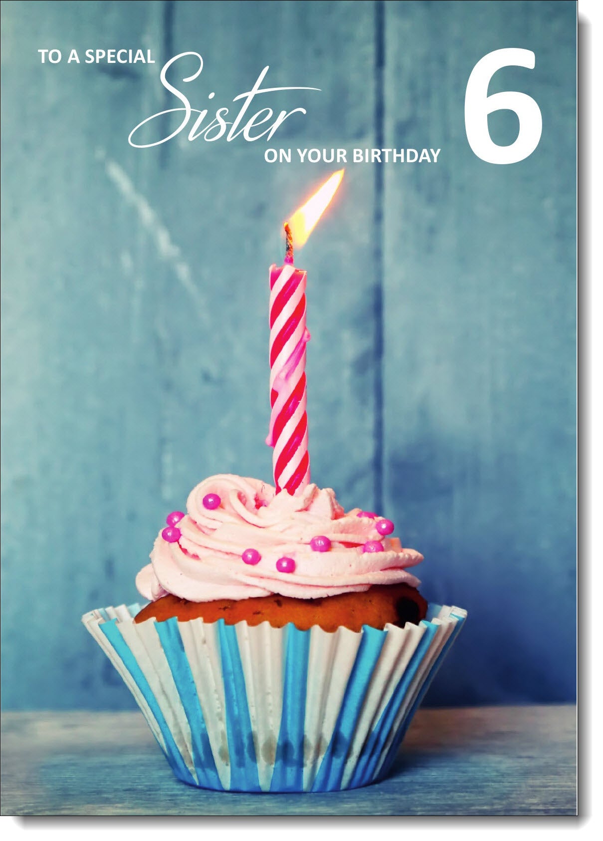 Sister 6th Birthday Card Age 6 Cupcake and Pink Candle
