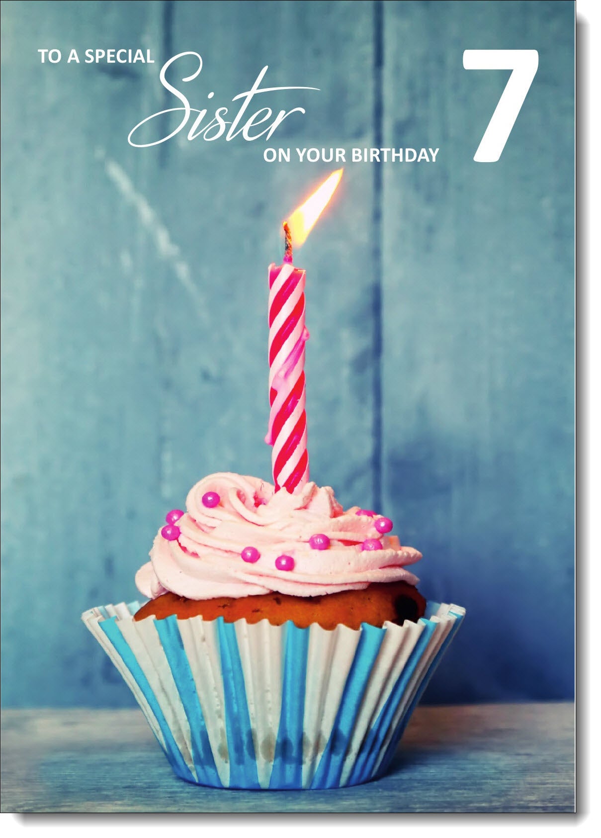 Sister 7th Birthday Card Age 7 Cupcake and Pink Candle