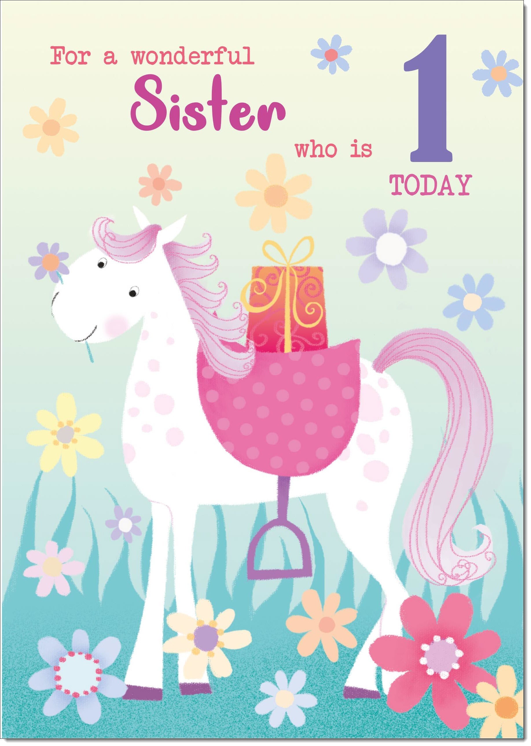 Sister 1st Birthday Card Age 1 Colouring Unicorn Horse