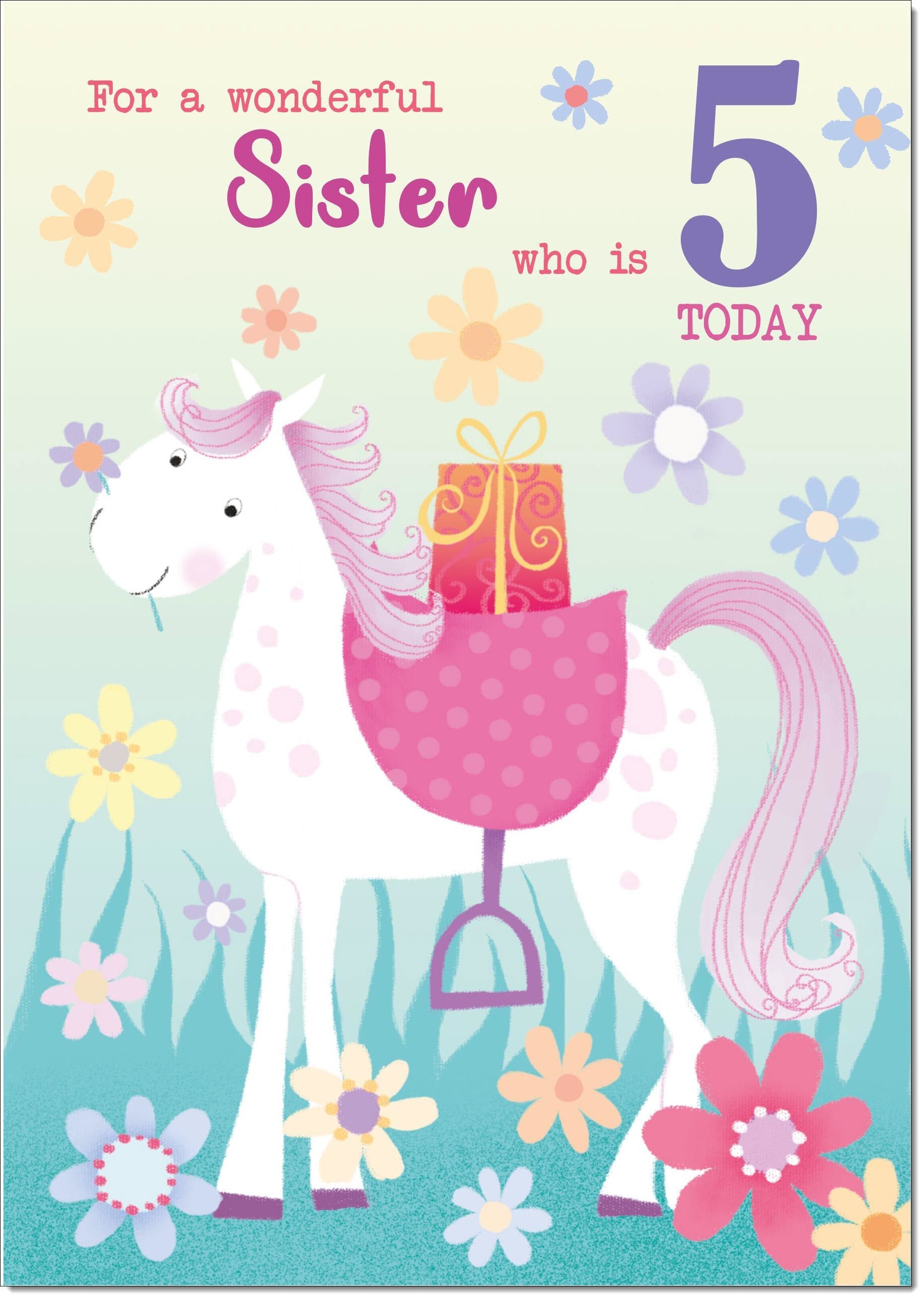 Sister 5th Birthday Card Age 5 Colouring Unicorn Horse