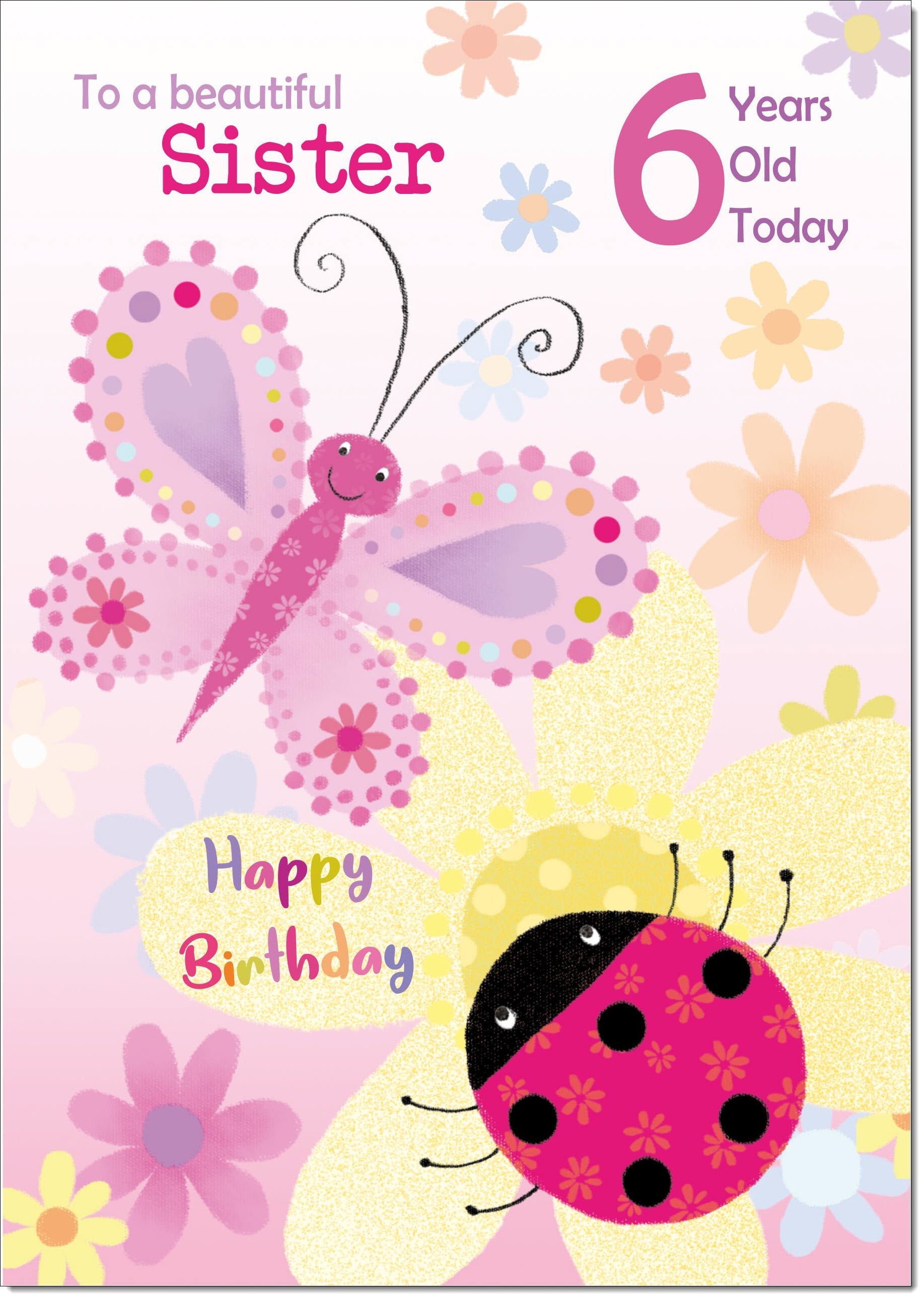 Sister 6th Birthday Card Age 6 Ladybird and Butterfly