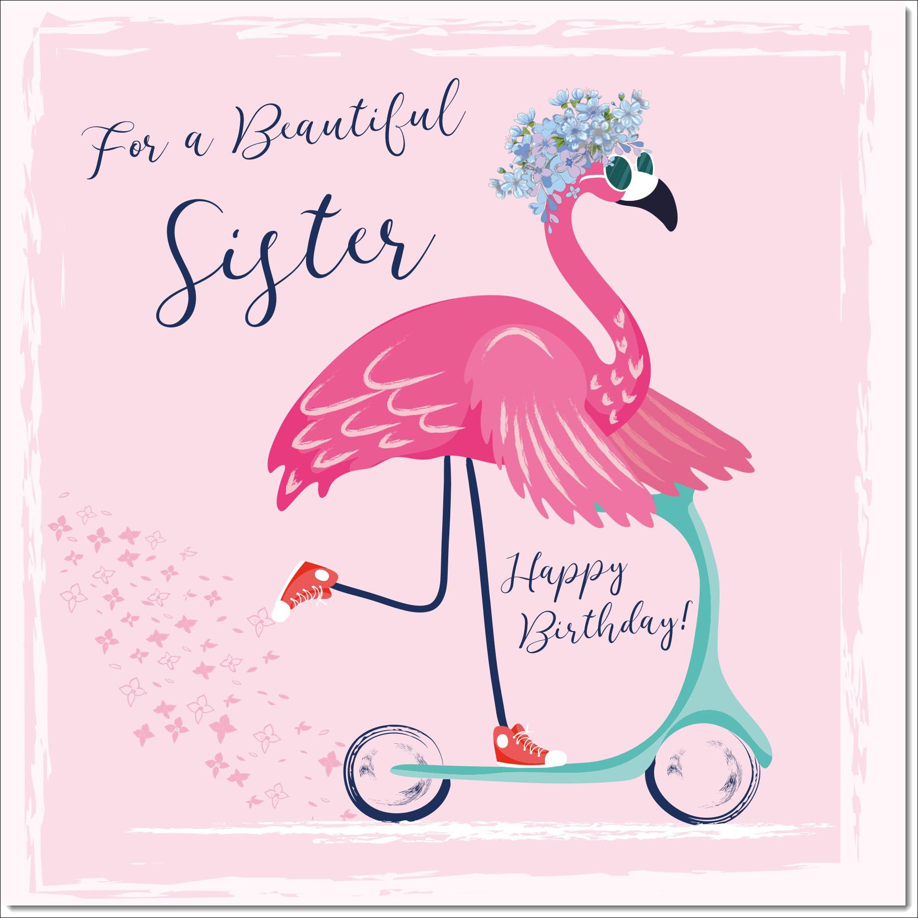 Sister Birthday Card Flamingo Scooter