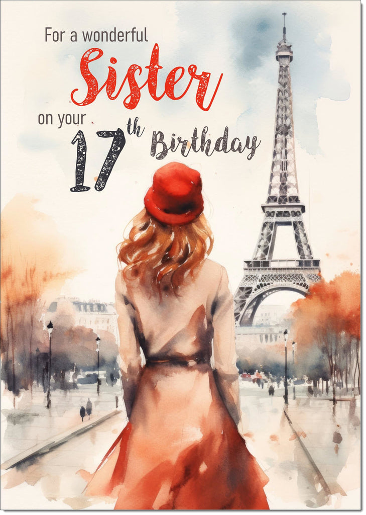 Sister 17th Birthday Card Age 17 Paris, Eiffel Tower