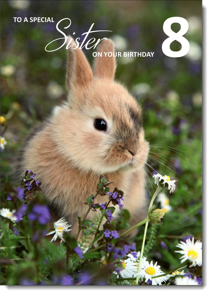 Sister 8th Birthday Card Age 8 Bunny Rabbit