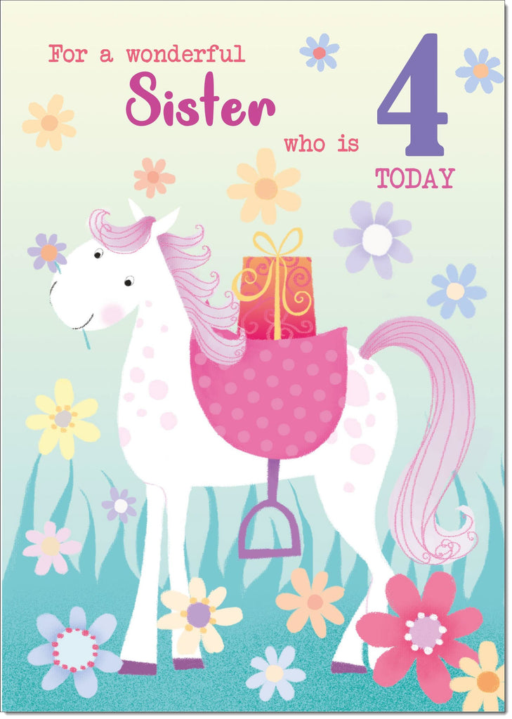 Sister 4th Birthday Card Age 4 Colouring Unicorn Horse