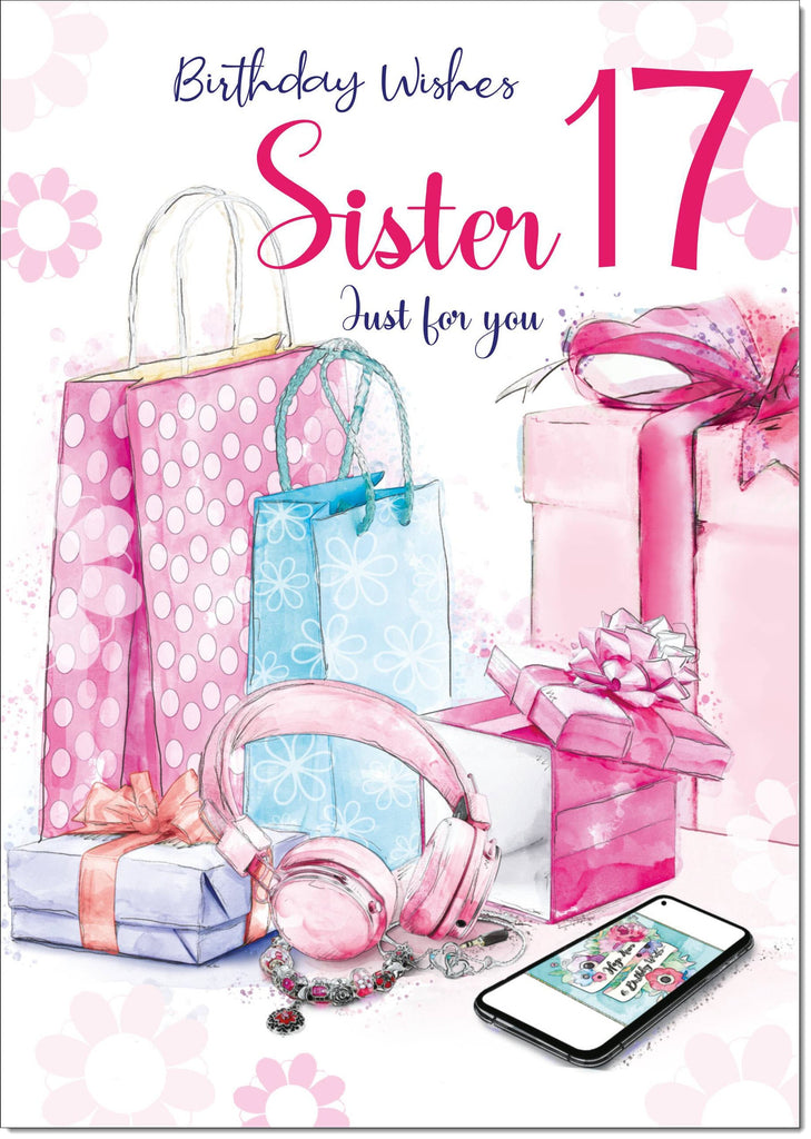 Sister 17th Birthday Card Age 17 Birthday Dog