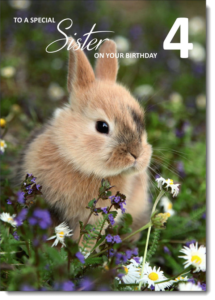 Sister 4th Birthday Card Age 4 Bunny Rabbit