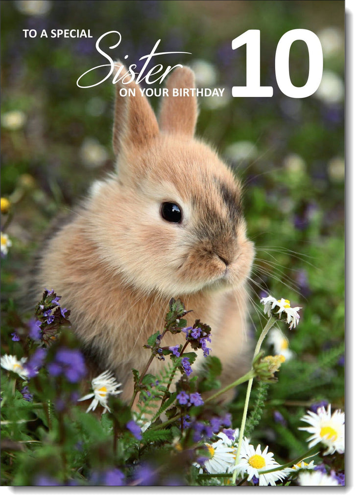 Sister 10th Birthday Card Age 10 Bunny Rabbit