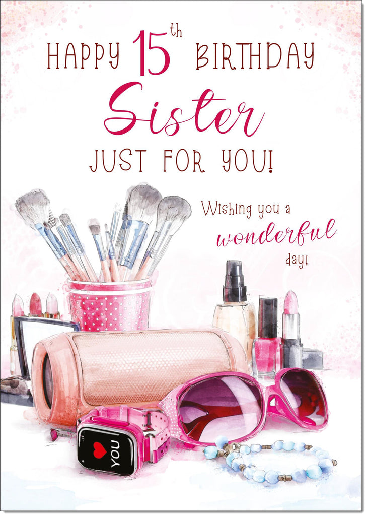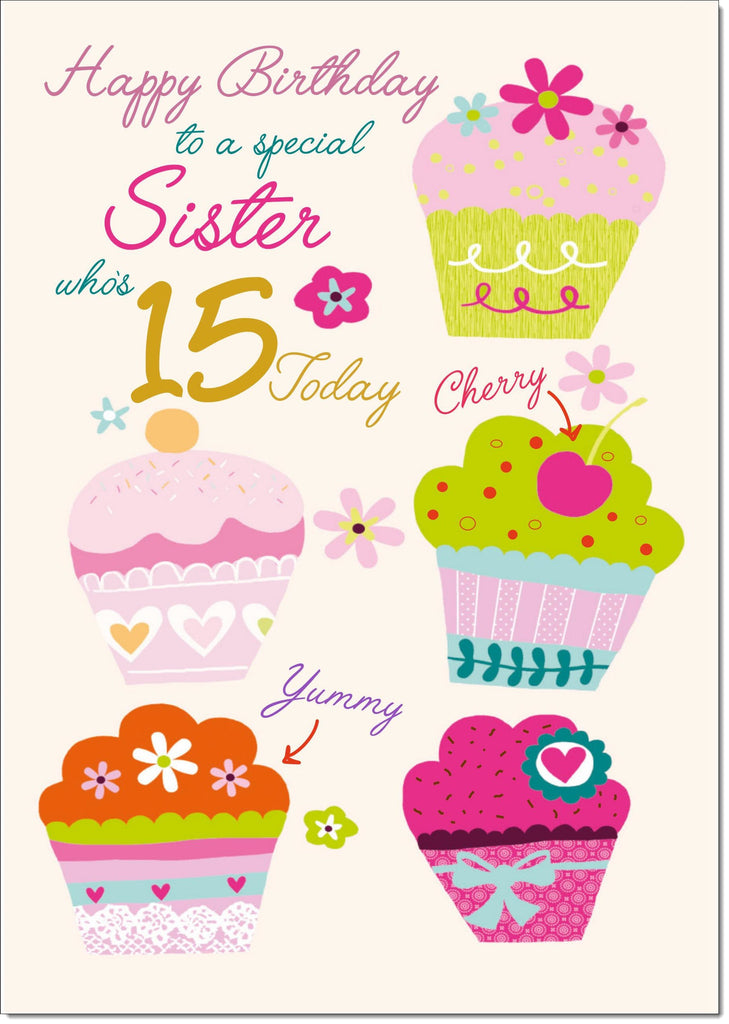 Sister 15th Birthday Card Age 15 Bright Cupcakes