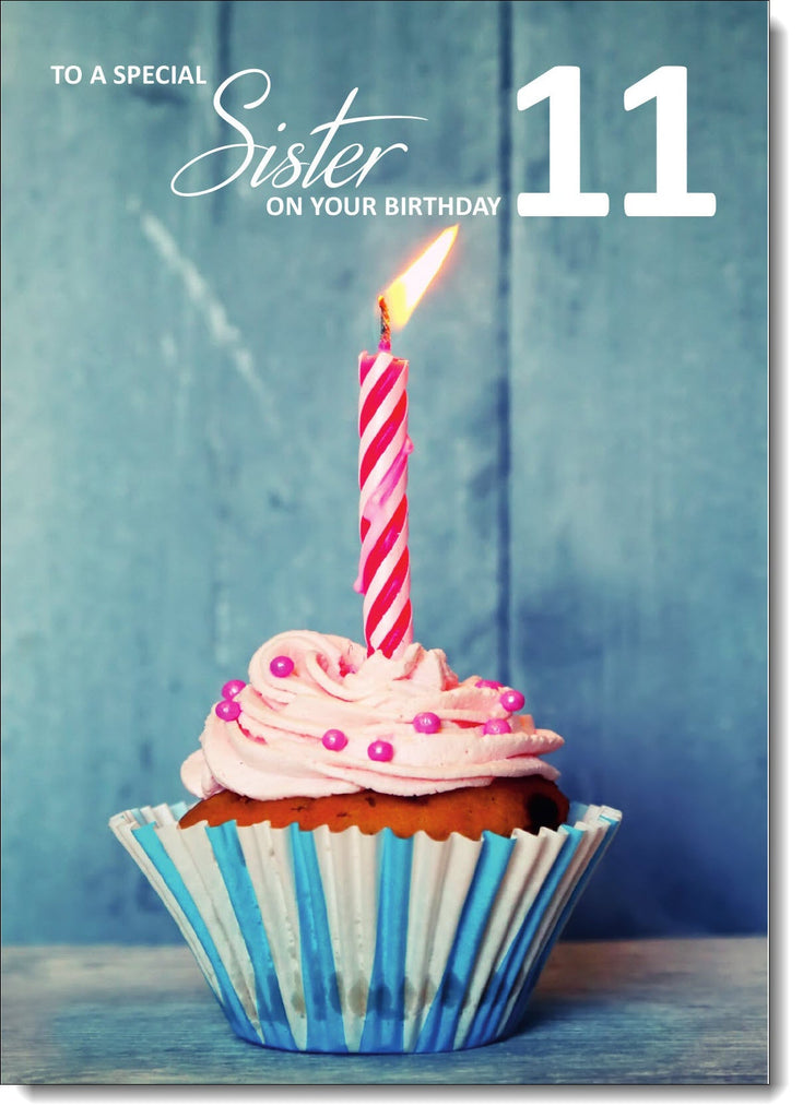 Sister 11th Birthday Card Age 11 Cupcake and Pink Candle