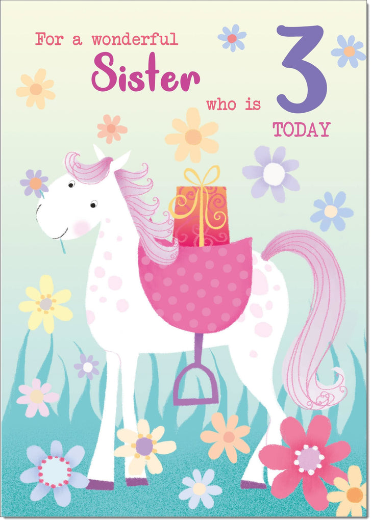 Sister 3rd Birthday Card Age 3 Colouring Unicorn Horse