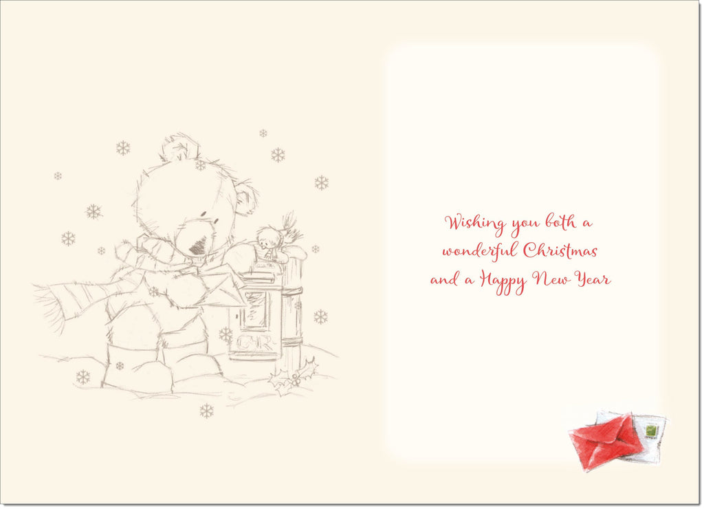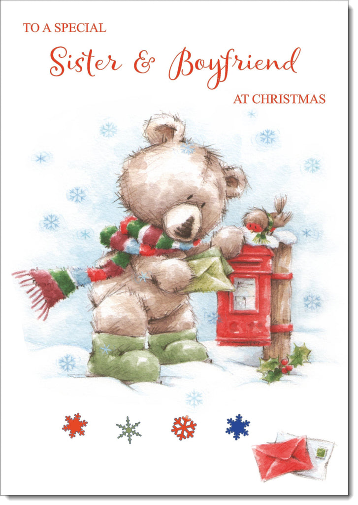 Sister & Boyfriend Christmas Card Cute Bear at Post Box