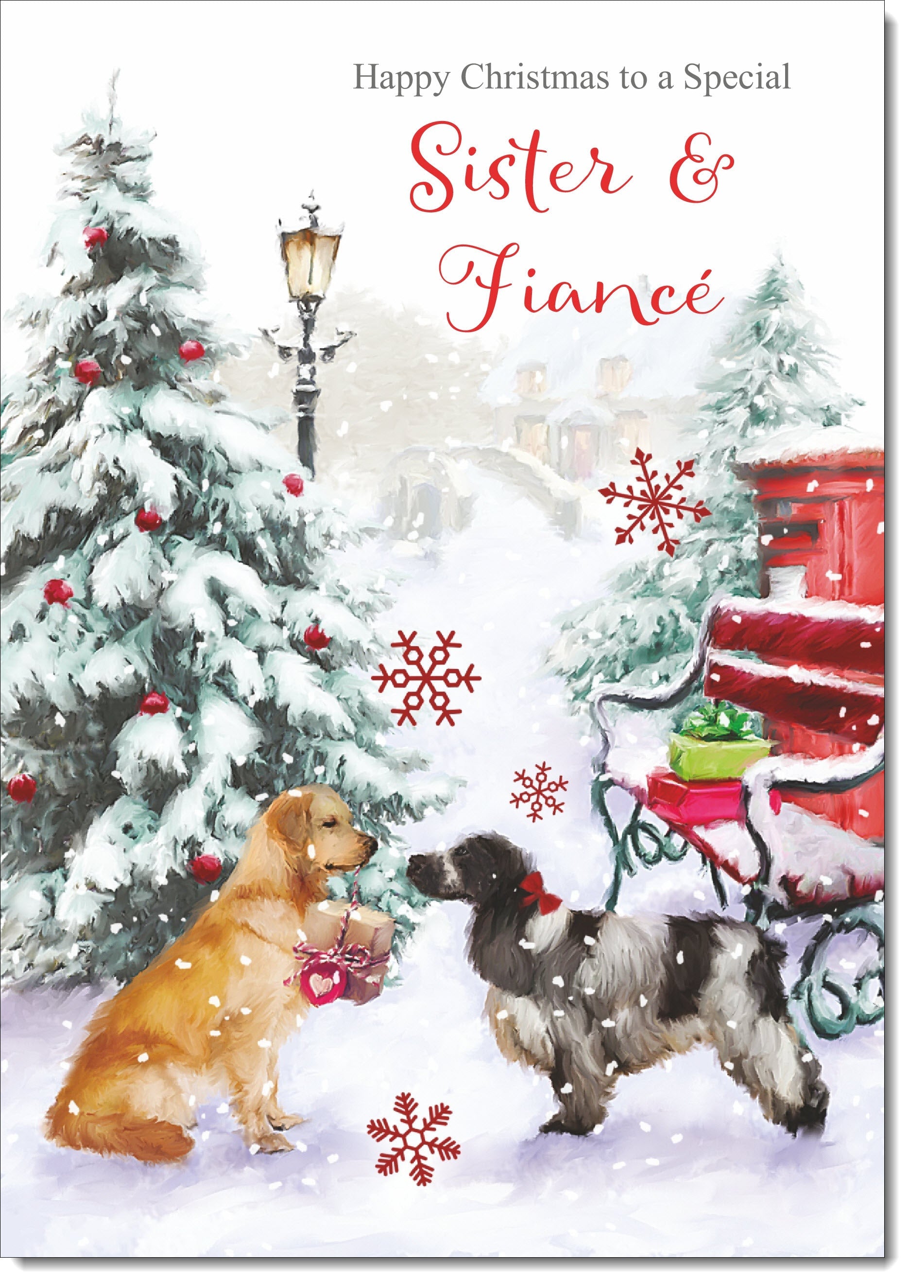 Sister & Fiance Christmas Card Two Dogs in Snow