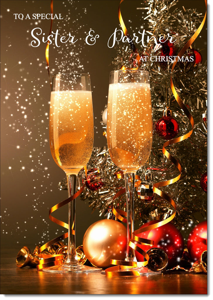 Sister & Brother-in-Law Christmas Card Two Champagne Glasses
