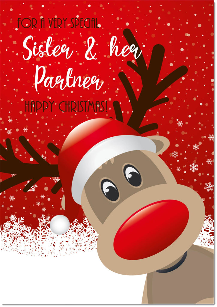 Sister & Boyfriend Christmas Card Rudolph in Snow