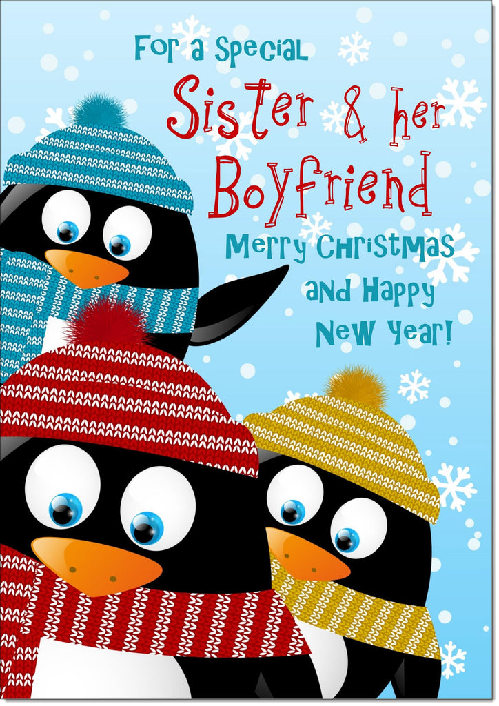 Sister & Boyfriend Christmas Card Cat by Snowy Red Door
