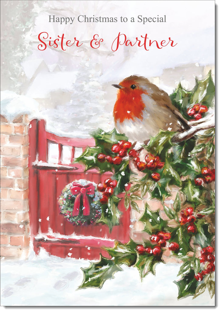 Sister & Partner Christmas Card Red Roses Christmas Arrangement