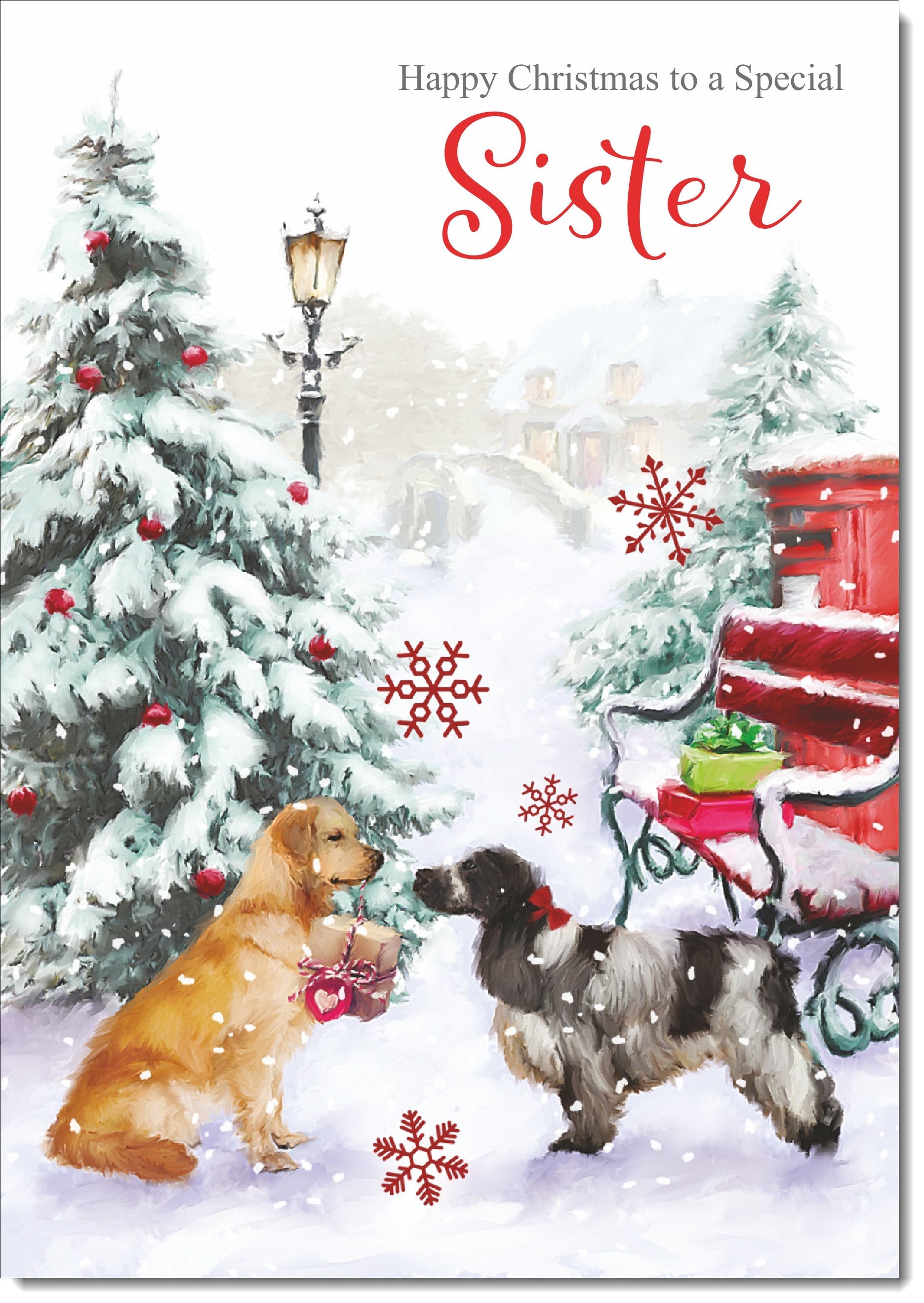 Sister Christmas Card Two Dogs in Snow