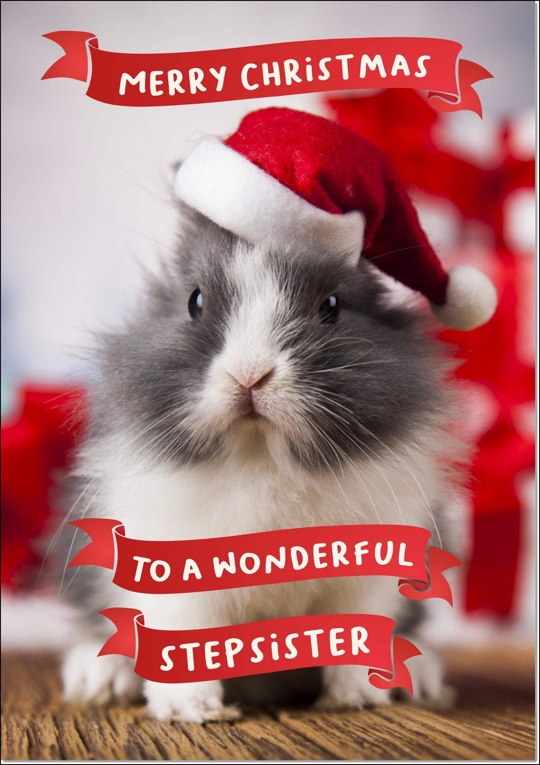 Stepsister Christmas Card Cute Santa Paws Rabbit Pet Christmas Hat