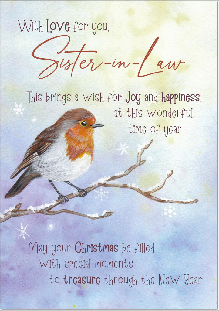 Sister-in-Law Christmas Card Watercolour Robin In The Frost