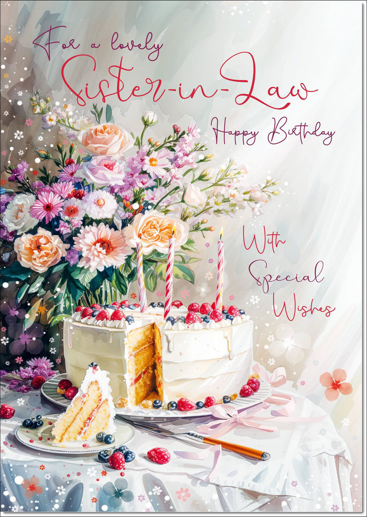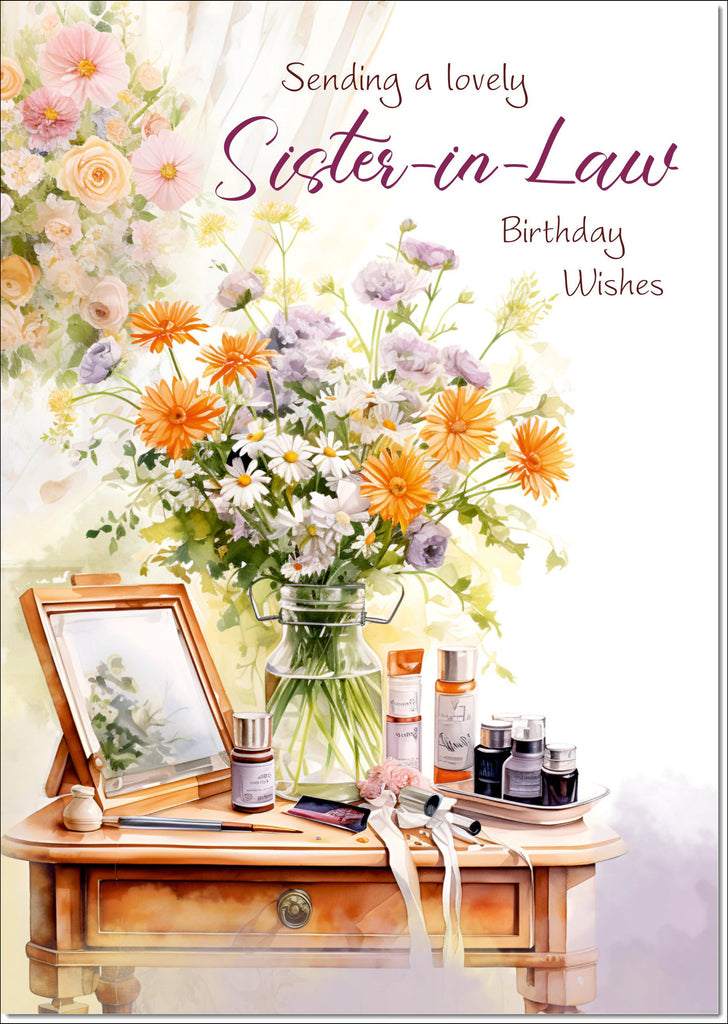 Sister-in-Law Birthday Card Flowers and Butterflies