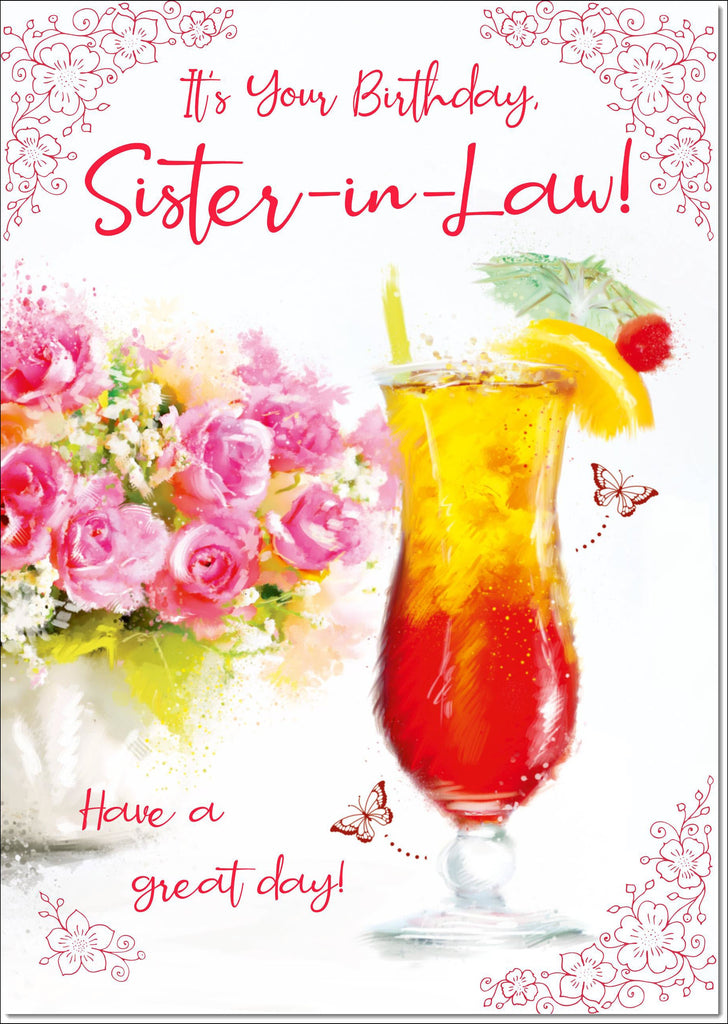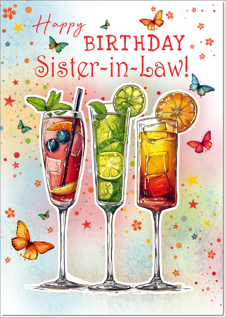 Sister-in-Law Birthday Card Cocktails and Butterflies