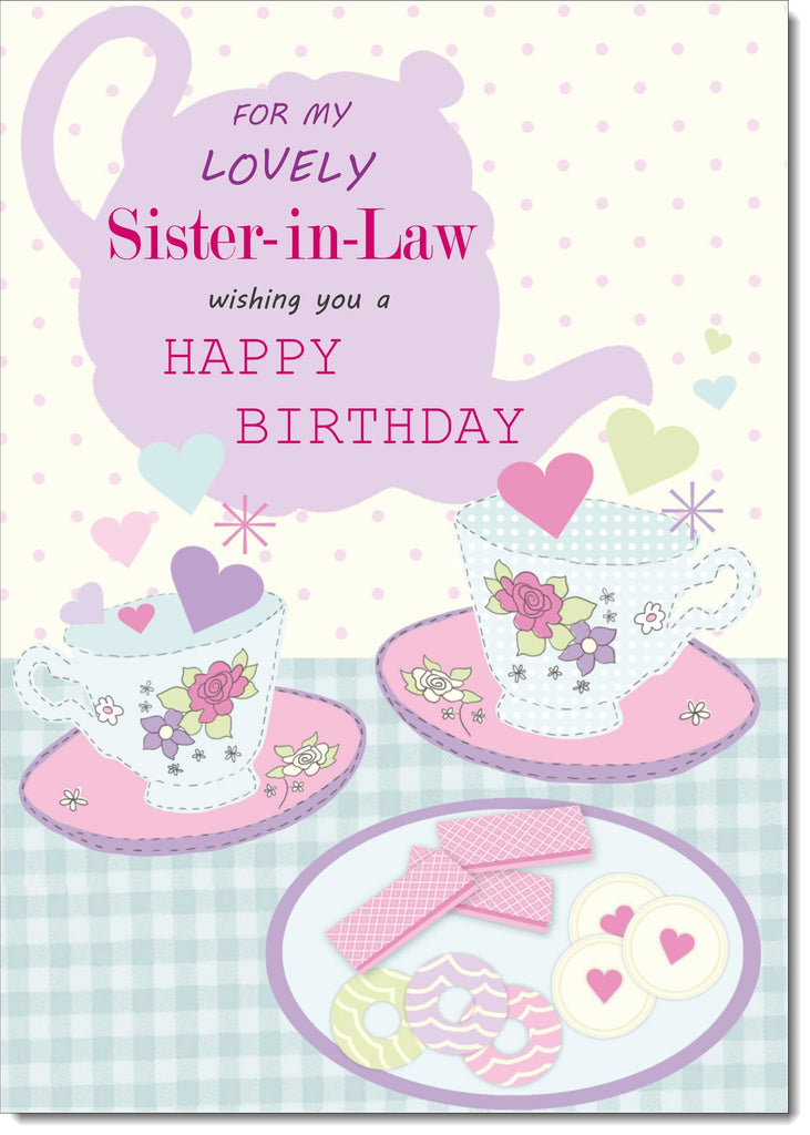 Sister-in-Law Birthday Card Cute Teddy's Afternoon Tea