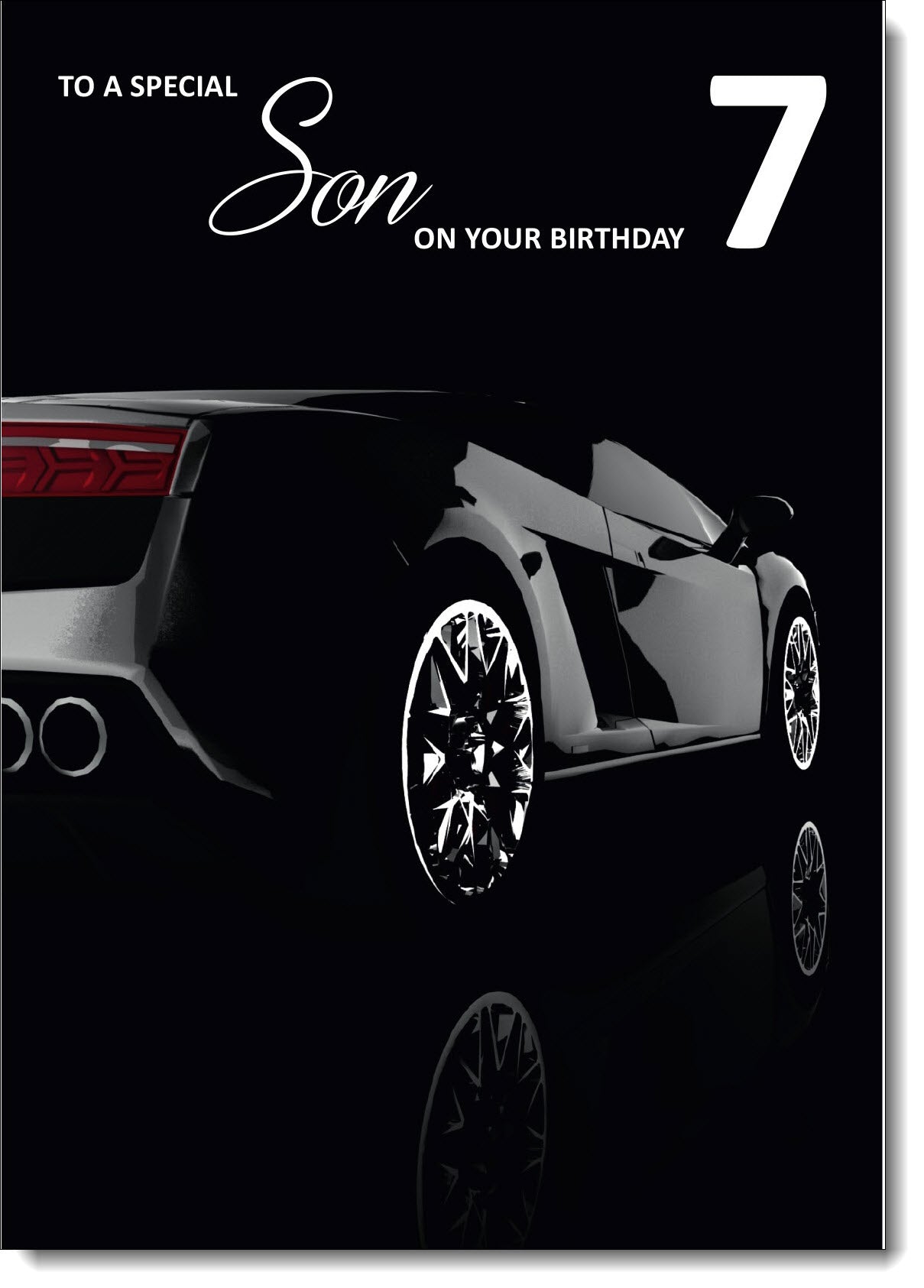 Son 7th Birthday Card Age 7 Black Lamborghini