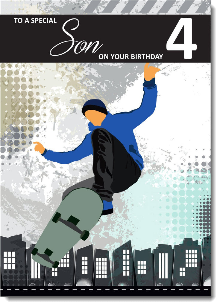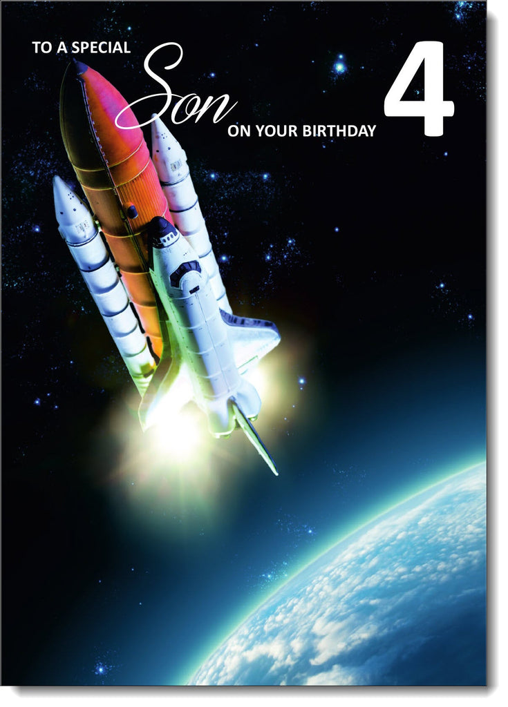 Son 4th Birthday Card Age 4 Rocket Ship in Space