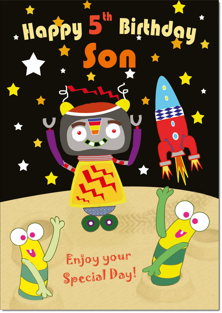 Son 5th Birthday Card Age 5 Rocket Ship in Space