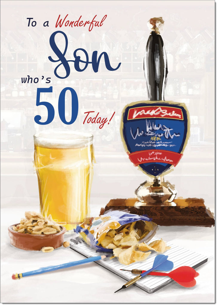 Son 50th Birthday Card Age 50 Draft Beer