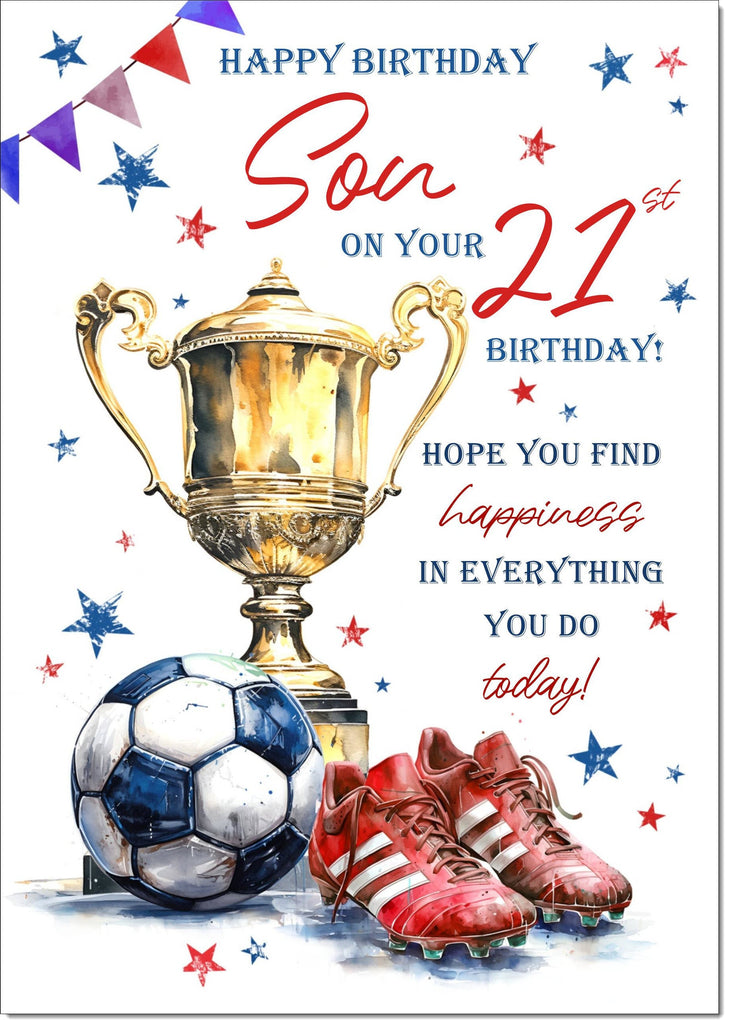 Son 21st Birthday Card Age 21 Footballer's Trophy
