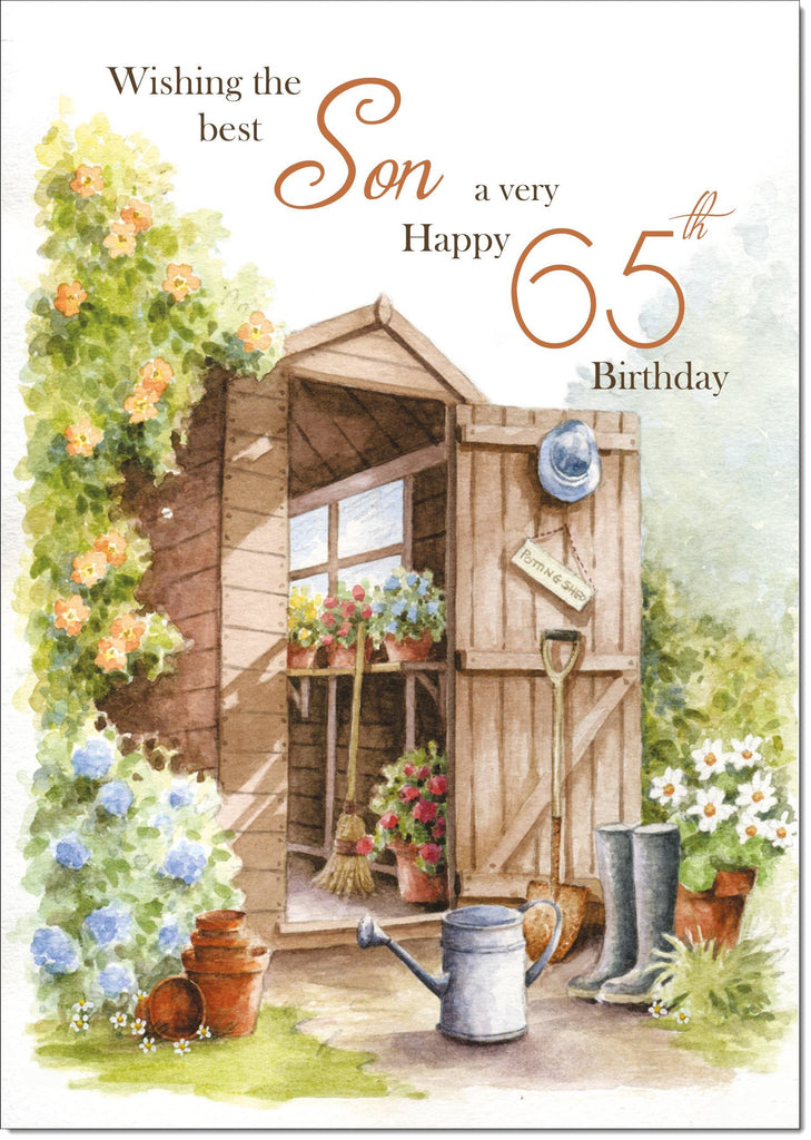Son 65th Birthday Card Age 65 Garden Shed